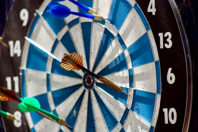 Find the bullseye, put it in sight. Imagine hitting it and keep on throwing!