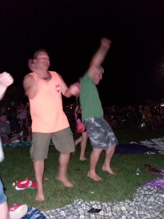 The heart driving beat has the sound of a fast moving train screaming out a clattering rhythm on noisy tracks. Most people look like they are in an exercise class in full motion adjacent to the wide-open Yasgur’s Farm.